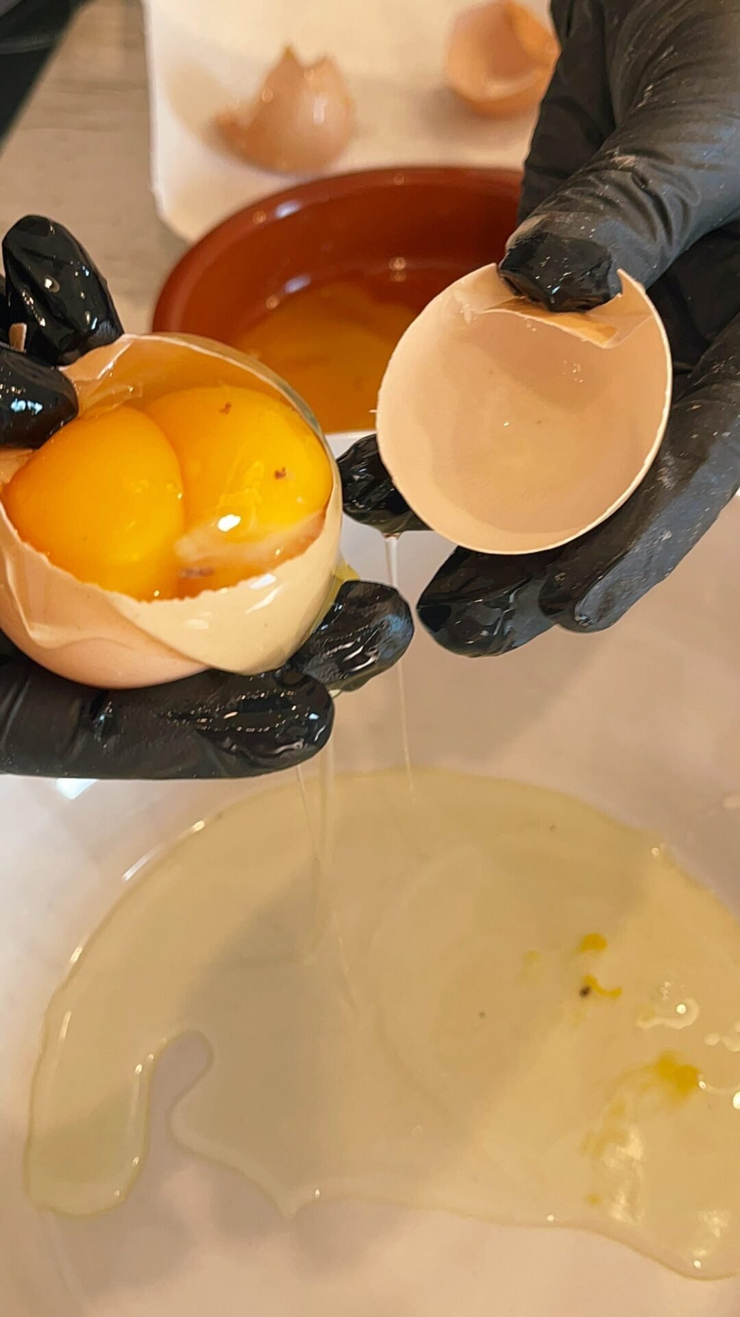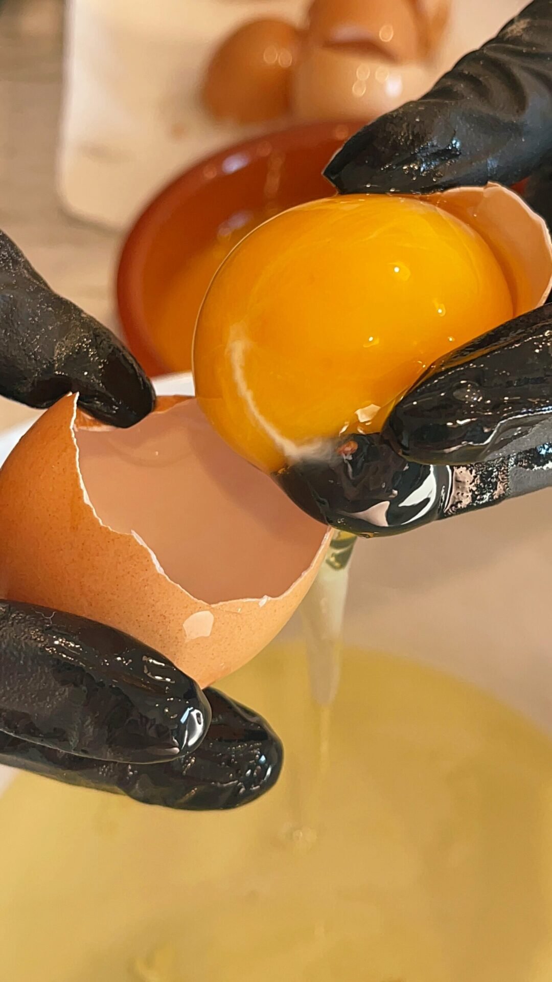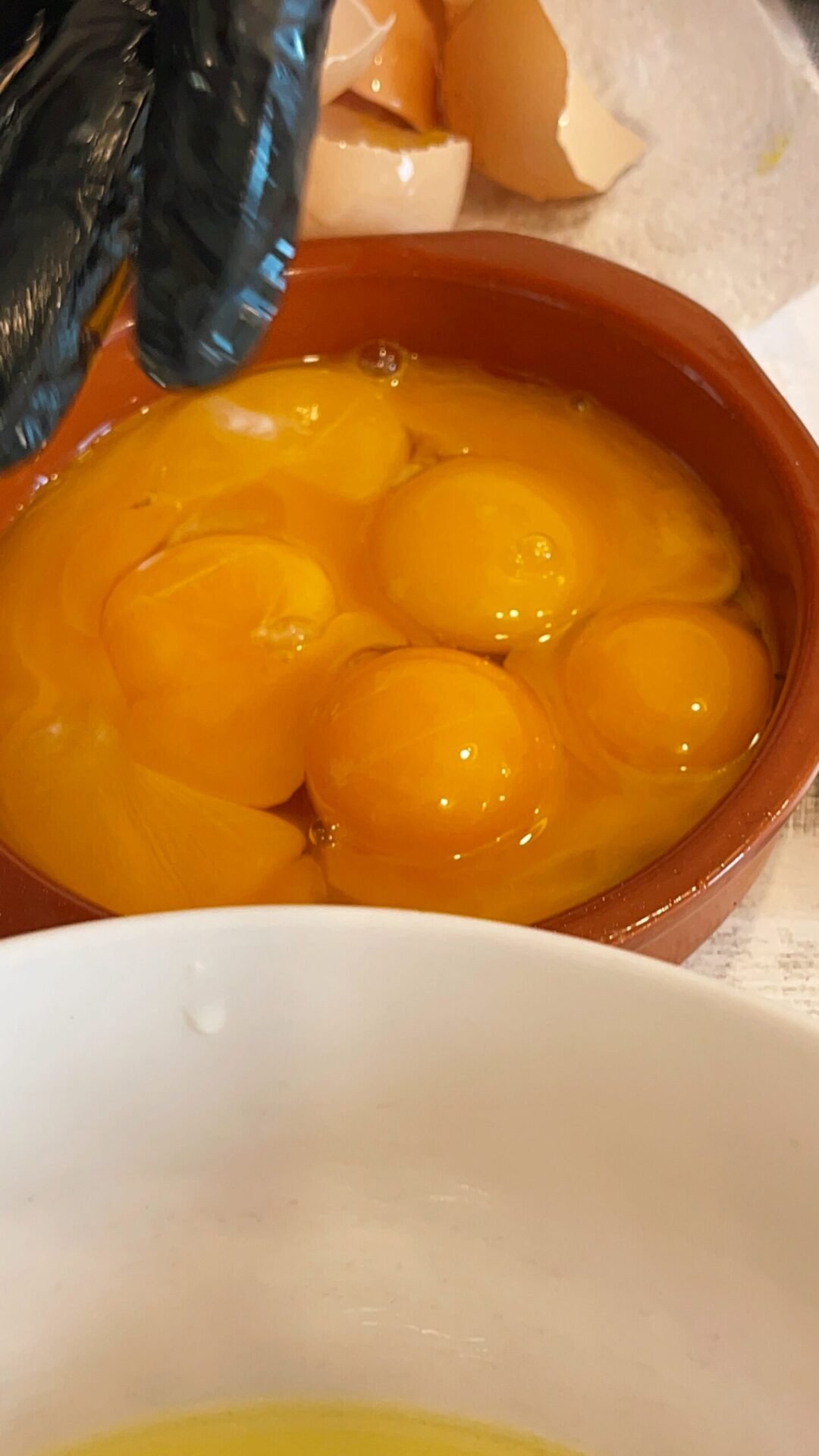 • I started by sifting the flour (another important step) directly into the bowl of the food processor. In a small bowl, I mixed the yeast, 1 tablespoon of sugar, 1 tablespoon of warm milk and 2-3 tablespoons of flour. After 10 minutes, I added the mixture over the flour. I also separated the eggs, for the dough we use only the yolks.
