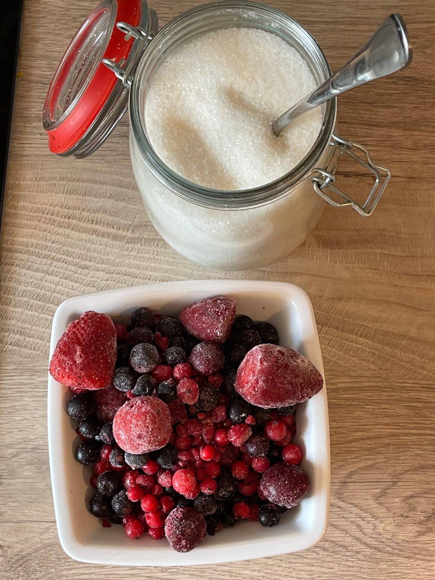500g mixed frozen berries6 spoons of sugar