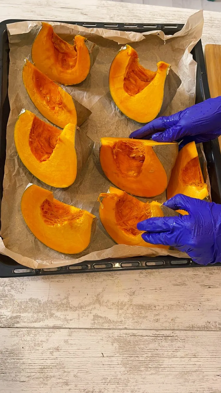 De data aceasta a fost ales un dovleac cu coajă albă, cunoscut din copilărie. Iarna, mama îl cocea des, iar la final era savurat ca desert, cu puțin zahăr presărat deasupra.