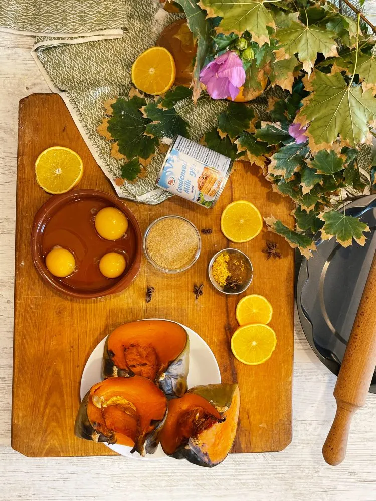 - Acum, având dovleacul copt și răcit, putem pregăti restul ingredientelor. Cântărim ingredientele atât pentru umplutură, cât și pentru aluat; este întotdeauna important să fie toate la îndemână înainte de a începe.