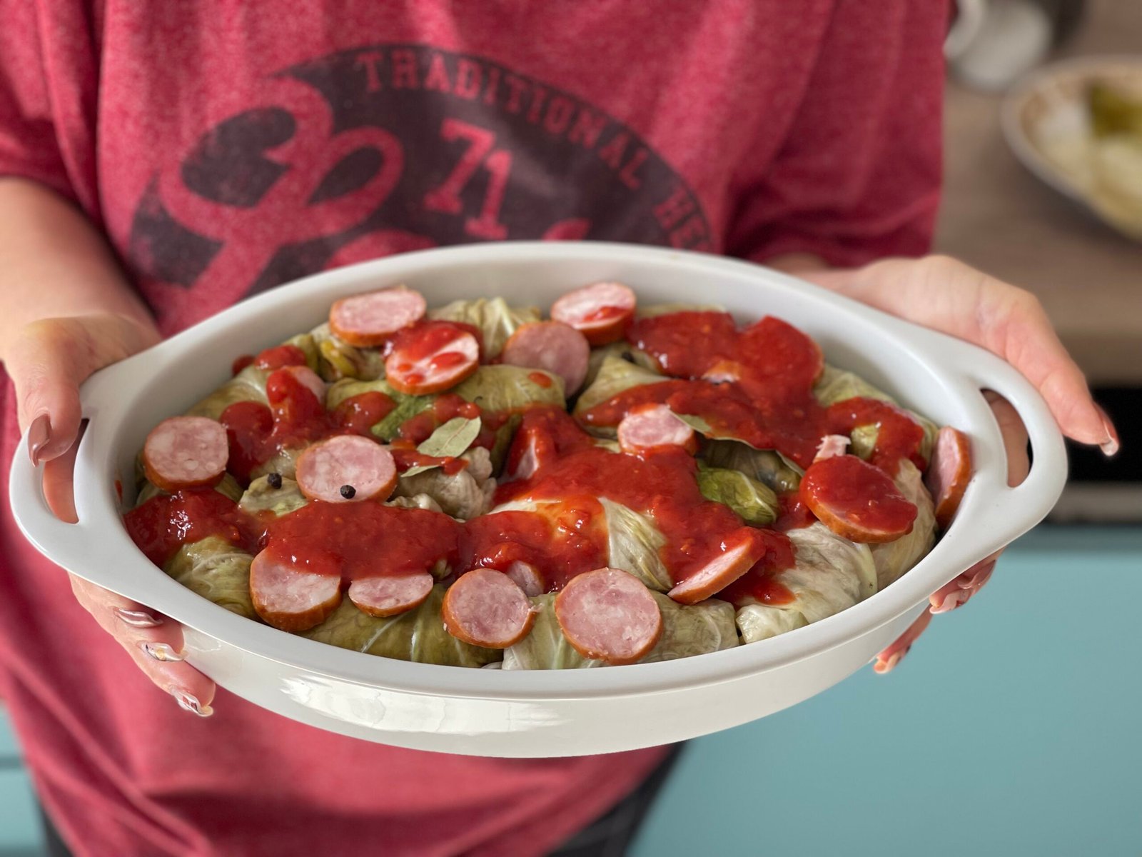 - Sarmalele sunt gata! Le-am scos din cuptor, iar aroma lor se simte imediat în întreaga bucătărie — un miros care te aduce instant cu gândul la mesele în familie și la toamna în grădină. Se servesc calde, alături de o lingură generoasă de smântână și, dacă vreți, cu mămăliguță sau pâine de casă.