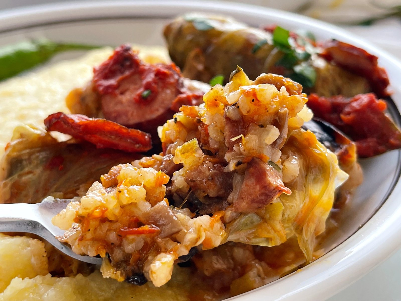 Sarmale în foi de varza dulce, cu legume si carnati afumati