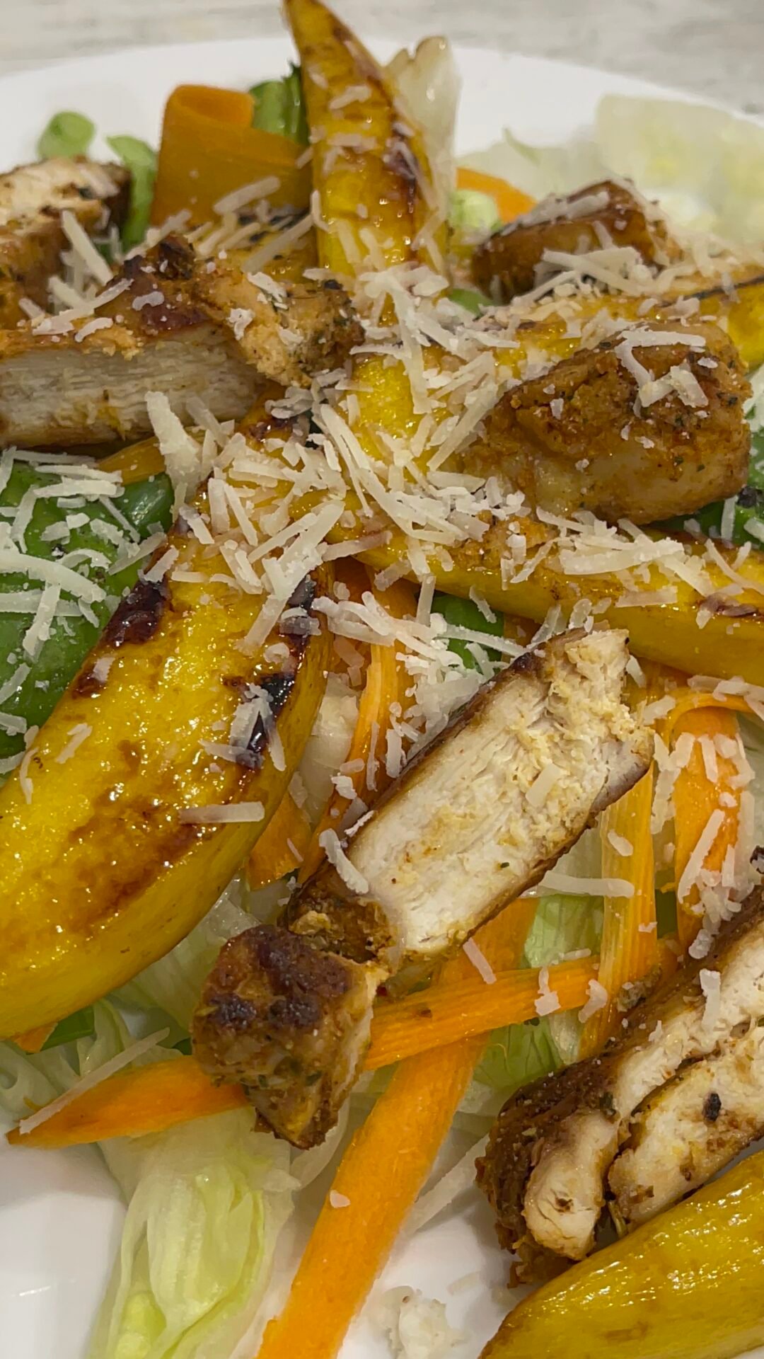 Mango and chicken salad with parmesan and lemon dressing