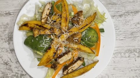 Mango and chicken salad, brings summer on a plate regardless of the time of day you choose to eat it. A tasty salad, full of flavor, ready in less than 30 minutes.
